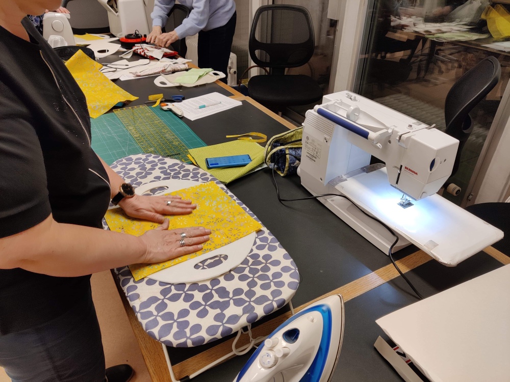 Symaskine, skæregrej, strygejern, tråd, almindelige syting og følgende stof