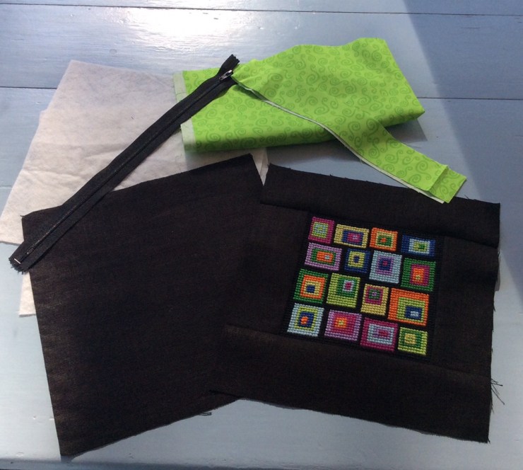 Du skal bruge: Ydersidestof, fórstof, volumenvlies, lynlås og lidt ekstrastof til lynlåsenderne.
