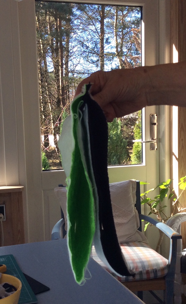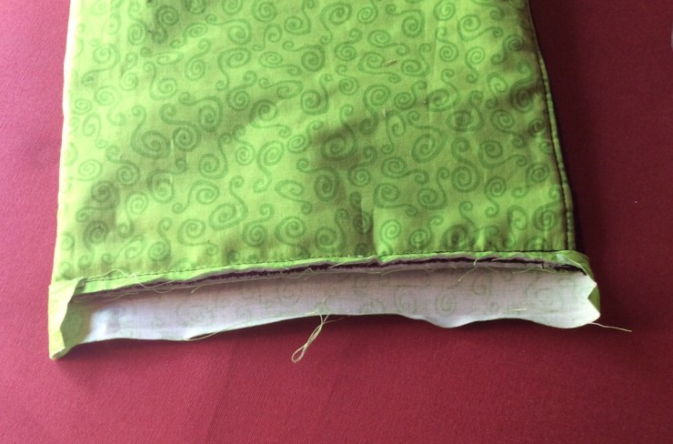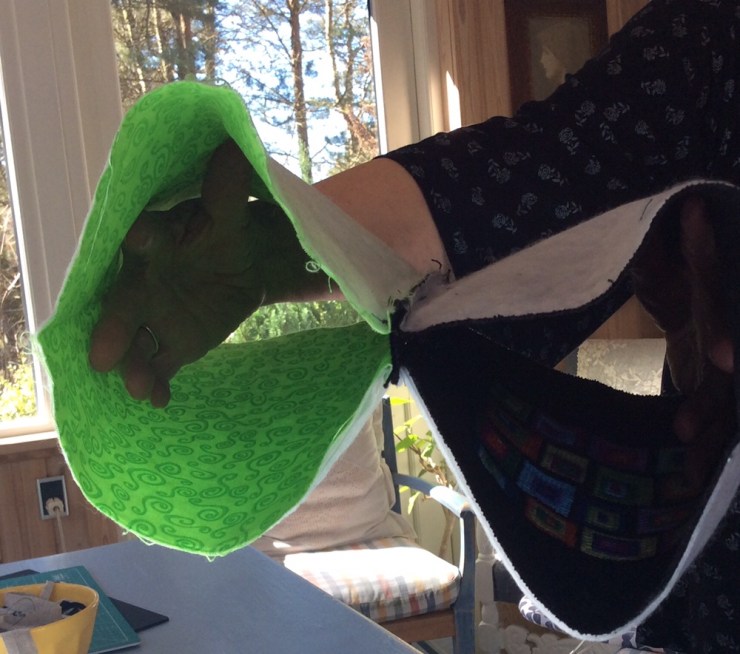Saml siden i posen ret mod ret med fórstoffet udad. Sy posen sammen.